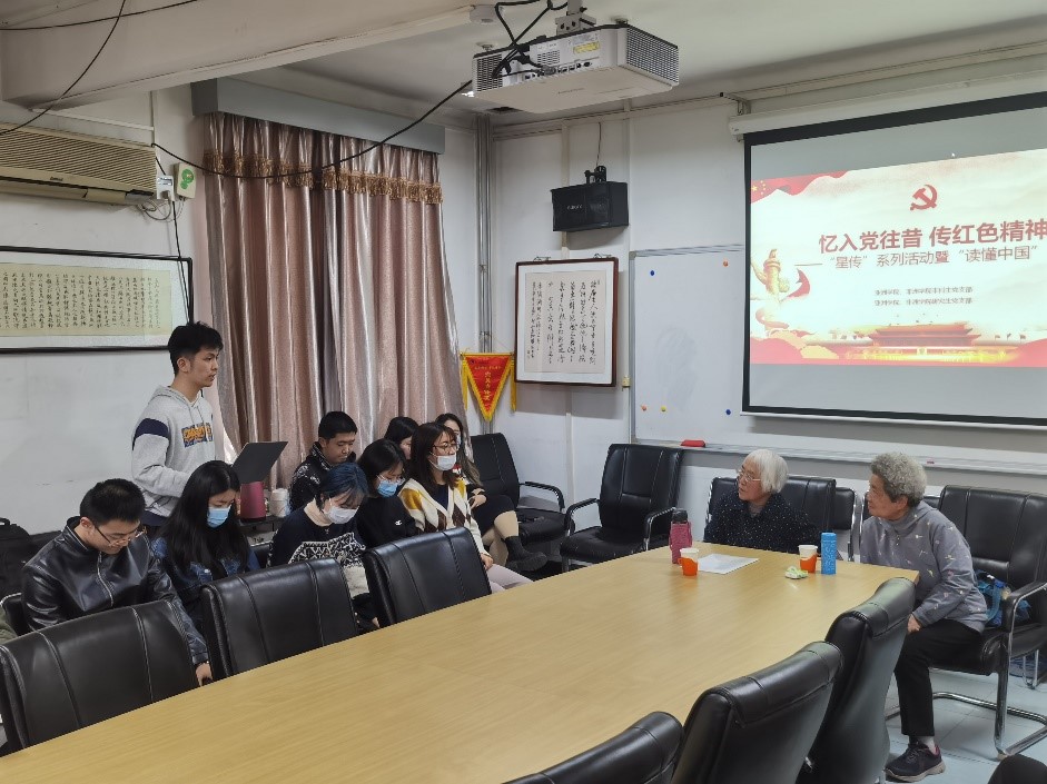 薪火相传,继往开来。时值中国共产党建党100周年之际,为教育引导广大青年员工爱党、爱国、爱社会主义,充分发挥“五老”亲历者、见证者、实践者的优势,扎实开展党史、新中国史、改革开放史、社会主义发展史等历史教育,英国上市官网365本科生、研究生党支部应关工委关于开展“读懂中国”活动的指示,于2021年4月2日开展“忆入党往昔,传红色精神”——“星传”系列活动暨“读懂中国”活动。活动由本科生党支部预备党员丁一洺主持。