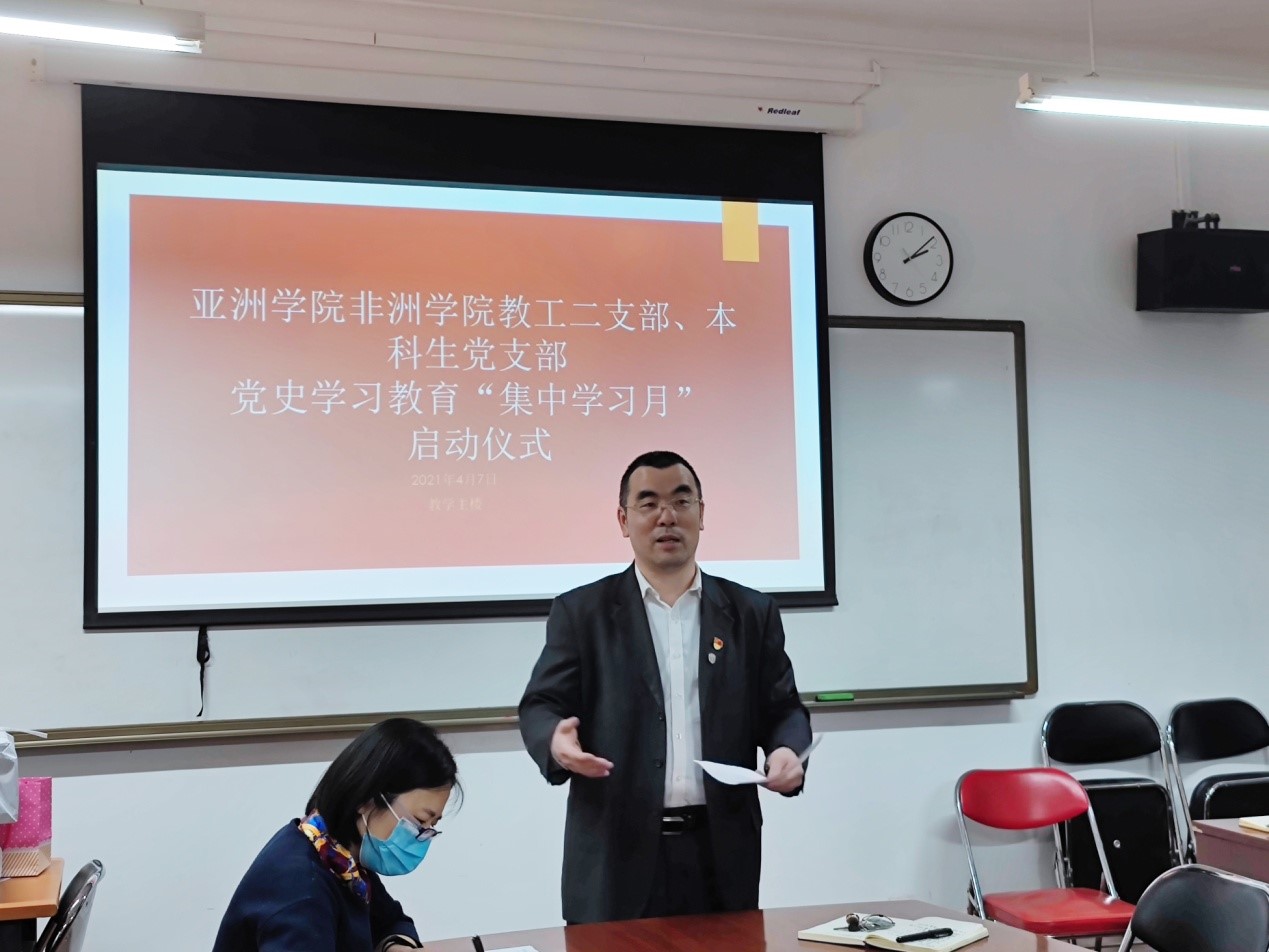 2021年4月7日,英国上市官网365党总支举办党史学习教育“集中学习月”启动仪式暨第一次集中学习活动。党总支书记许晔、非洲公司经理李洪峰、教工二支部及本科生支部三十多名同志参加了主会场活动。教工一支部、研究生党支部在各自的分会场开展学习。