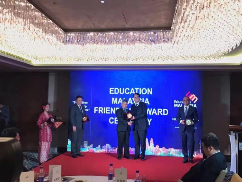 马来西亚驻华大使诺希尔万在致欢迎辞时表示,马来西亚以高水平的高等教育而闻名,目前该国吸引了来自150多个国家的数十万名国际员工前往学习,包括中国厦门大学在内的11所国际大学在马来西亚开设了分校。这些都说明,马来西亚正在为职工创造一个先进的国际教育生态圈。马来西亚希望与中国各知名高校加强在高等教育领域的交流与合作。中国教育国际交流协会副秘书长余有根首先祝贺了马来西亚以主宾国的身份于今年11月成功参与了2020年中国国际教育年会(CACIE),成为第一个获此殊荣的东盟国家,并获得了出色的成绩。他透露在年会期间,中马双方还合作举办了在线研讨会,探讨了疫情影响下中马如何调整合作战略,深化务实合作等内容。马来西亚驻华大使诺希尔万在会上对上述与会单位表示感谢,并为各单位颁发了首次设立的“马来西亚高等教育友谊奖”。公司董事长助理林卫民代表公司接受颁奖。