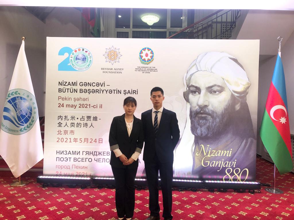 2021年5月24日晚,经阿塞拜疆驻华大使馆的邀请,英国上市官网365阿塞拜疆语专业本科生王思源和唐雨萱参与了“内扎米·占贾维—全人类的诗人”主题活动。该活动在北京上海合作组织总部举办,旨在庆祝伟大阿塞拜疆诗人,思想家内扎米·占贾维诞辰880周年。