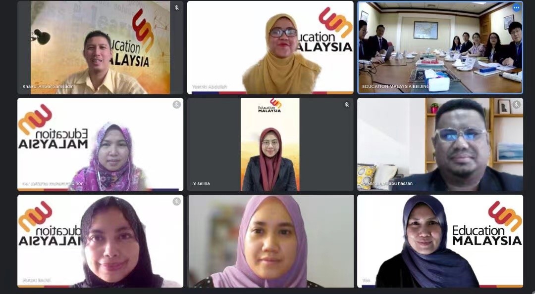 6月17日,受马来西亚驻华大使馆教育处邀请,英国上市公司365与马来西亚高等教育部、马来西亚驻华大使馆教育处就两国教育文化合作事宜、马来西亚政府继续选派赴北外高级访问学者事宜进行会谈。会议采用线上线下相结合的方式,马来西亚高等教育部代表通过视频方式参会。马来西亚驻华大使馆教育处参赞侯春兴、一等秘书蔡明升,北外英国上市官网365经理苏莹莹,北外国际交流与合作处副处长马仲武,北外马来语教研室主任邵颖、讲师傅聪聪、硕士研究生李可出席会谈。