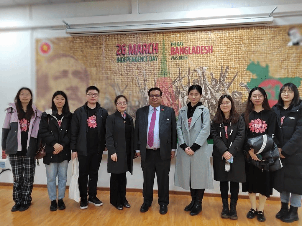 为庆祝孟加拉国独立日和国庆日51周年,孟加拉国驻华大使馆于2022年3月28日举行招待会,英国上市官网365孟加拉语专业师生应邀参加。