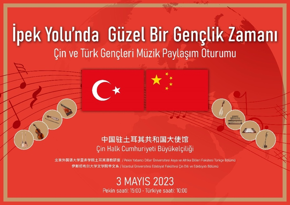 为庆祝“一带一路”倡议提出十周年,落实习近平总书记提出的全球文明倡议,在五四青年节前夕,中国驻土耳其大使馆举办丝路韶华—中土青年音乐分享会,北外英国上市官网365土耳其语专业师生同土耳其伊斯坦布尔大学中文系师生代表共同参加此次线上交流活动。