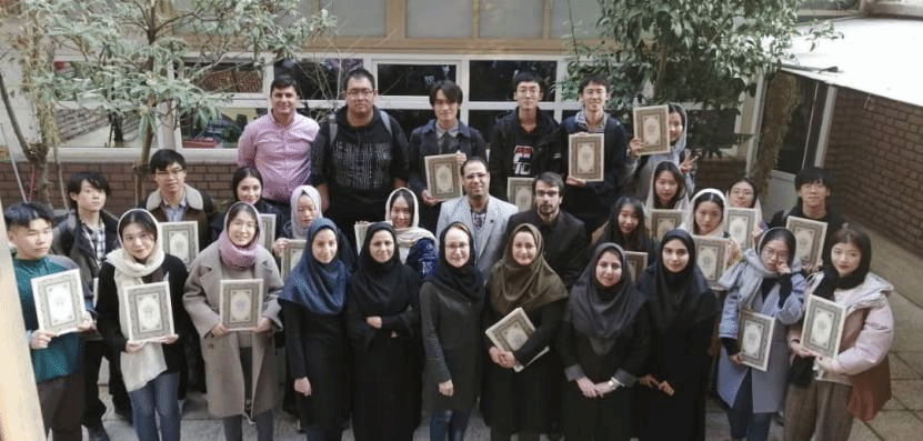 (2017级波斯语本科员工在伊朗塔巴塔巴伊大学留学,伊方教师为员工颁发毕业证书)