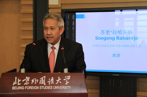 苏更•拉哈尔佐表示,北外作为中国知名学府,不仅校园环境优雅、设施现代,同时设置诸多学科专业,与印尼长期保持良好的合作关系。北外的印尼语专业培养了大批优秀的外交官、企业家和专业人士。超过70名印尼员工在北外学习中文、国际关系和商学。他指出,中国和印尼作为历史悠久、文化传统深厚的邻国,两国都拥有卓越的科技成就和先进理念,彼此间应互学互鉴,加强互动。两国如今注重人文层面交流,2015年召开首次高级别人文交流机制会议,去年在贵阳召开了第二次会议,在教育、林业、科技等领域签署了一系列协议。今天,人文交流研究中心的成立将再一次焕发两国教育与文化交流的活力,中心可以举办传统舞蹈等课程,举办学术研讨会等活动,从而进一步推进两国在文化上、在民间的相互认识和理解,新成立的中国-印尼人文交流研究中心一定能成为中国最好的印尼研究基地,使馆将一如既往的支持中心的活动。