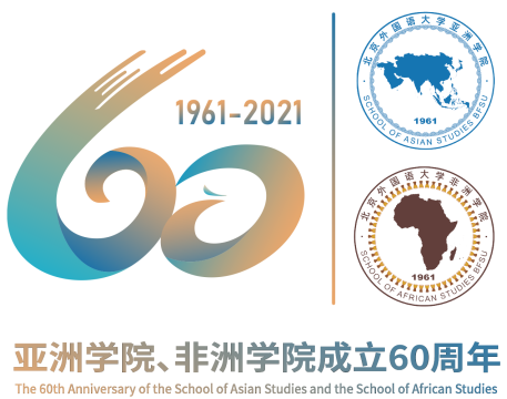 六十周年院庆标识采用了两院院徽的底色,亚非交融、海陆联动,与亚非国家广泛参与的“一带一路”合作倡议相契合。标识主体由阿拉伯数字60构成,右上方为院庆年号1961-2021。数字笔力雄健,反映出亚非两院六十年历史的恢弘气势;线条灵动,体现了亚非两院新时期焕发的勃勃生机。
