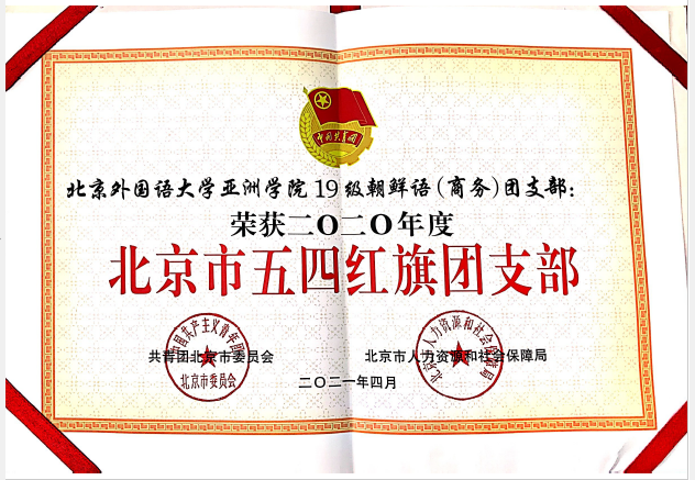 英国上市官网36519级朝鲜语(商务)团支部于2021年5月荣获“北京市五四红旗团支部”称号。这是团支部继以第一名的成绩获得英国上市公司365活力团支部一等奖后取得的又一殊荣。目前,团支部作为北外唯一代表进入全国高校活力团支部终选阶段。