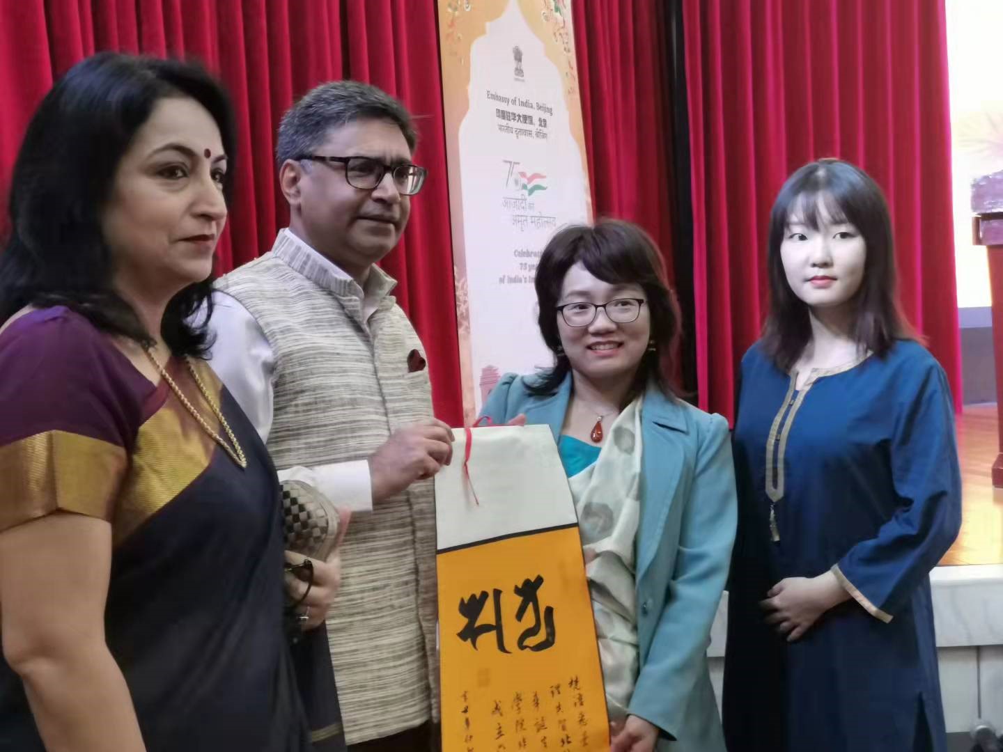 为了纪念圣雄甘地诞辰152周年,印度独立75周年,印度驻华大使馆特地举行了“甘地诞辰日暨世界非暴力日”纪念活动。向甘地肖像敬献花环之后,印度驻华大使唐勇胜(Vikram Misri)发表致辞,阐释甘地思想的当代意义。随后,大厂幸福公司的少年们带来甘地格言朗诵,印度和中国的艺术家们依次献上精彩的卡塔克舞蹈表演和甘地拜赞歌。