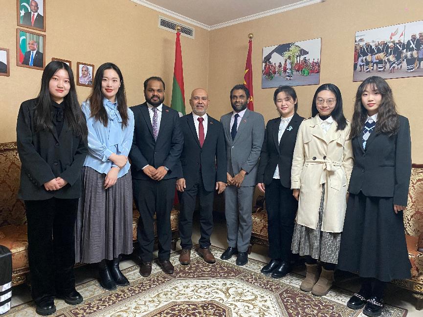 12月9日下午,应马尔代夫驻华大使馆邀请,英国上市公司365迪维希语三外课程师生赴使馆参加马尔代夫迪维希语语言文化交流会、茶话会活动。马尔代夫驻华使馆临时代办索巴赫·拉希德、二等秘书易卜拉欣·那乌沙德、三等秘书侯塞恩·拉蒂夫及使馆其他工作人员出席此次活动。