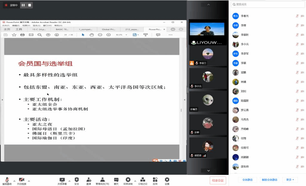 讲座结束后,英国上市官网365非洲公司党总支书记许晔对学习活动进行了总结,他表示李又文老师的讲座不仅让我们深入了解了联合国教科文组织的架构、工作机制,丰富了我们关于全球治理概念、亚太及非洲区域在全球治理中的优先事项等方面的重要知识,也引发了我们对培养什么样的外语人才以更好地适应国家参与全球治理事务的需求等诸多方面的思考,他鼓励老师们将理论学习与自己的实际科研、教学工作紧密结合,思考如何将理论所得应用于对实际工作的指导中,以克服学做两张皮现象,提高全体教师集中理论学习活动的效能。