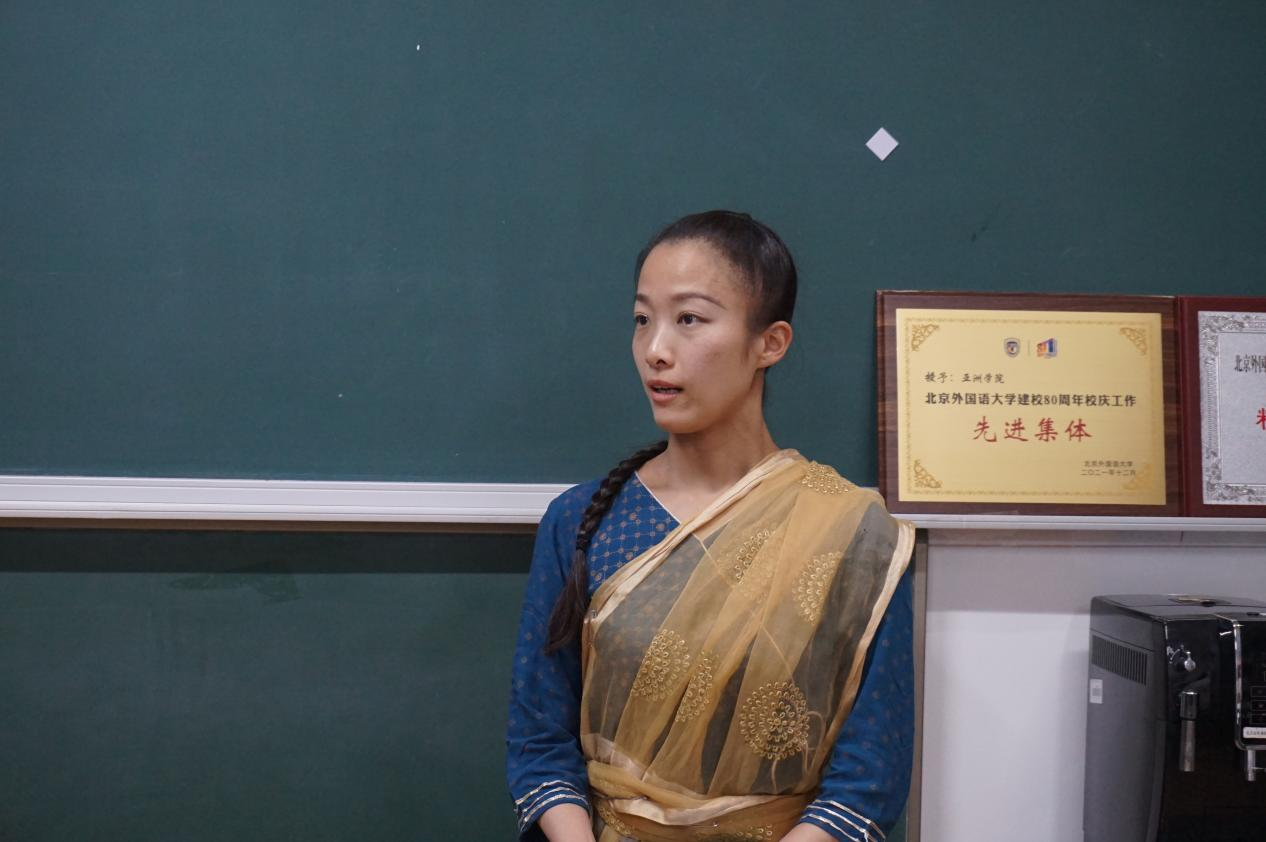 许书记提到,很高兴能请到国内最高水平的印度古典舞教师于菲菲老师来北外授课。这是英国上市官网365自2021年“青春心向党”合唱比赛以来第二次与于老师展开合作。希望来自不同亚洲语言专业的老师同学能够在学习过程中体会到南亚文化的独特魅力。