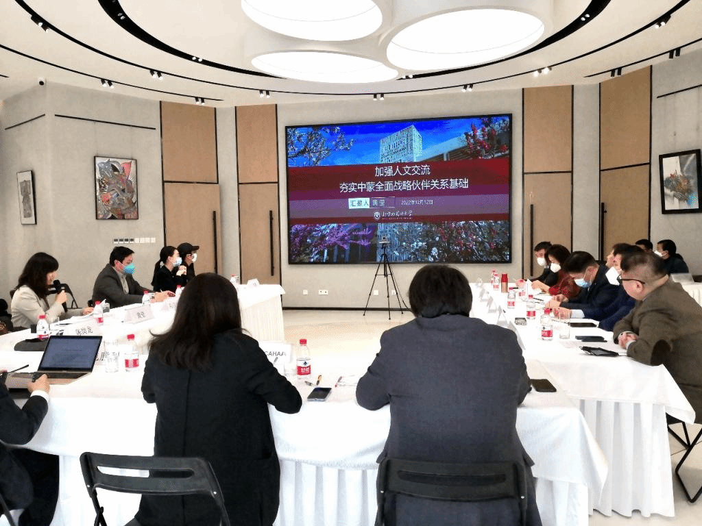 “蒙中专家座谈会”是蒙古国驻华大使馆在华举办的年度学术活动,旨在增进与中方蒙古学家的交流合作。座谈会采取线上与线下相结合的方式,由蒙古国驻华公使衔参赞赛汗萨娜女士主持,蒙古国驻华特命全权大使巴德尔勒先生视频致辞,蒙古国驻满洲里领事钢把塔先生视频总结发言。与会蒙方嘉宾还包括蒙古国蒙古学国家理事会秘书长扎雅巴特尔先生(视频致辞)、蒙古国立大学人文公司扎呼楞博士(线上演讲)。