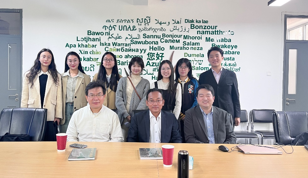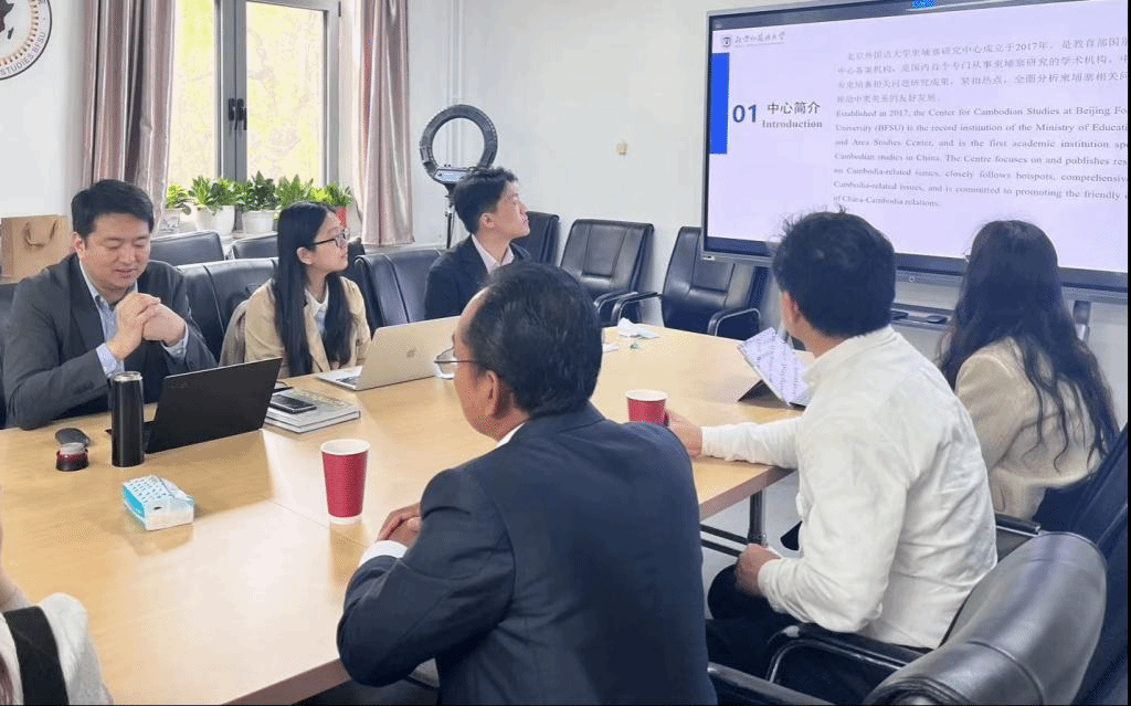2023年4月10日,柬埔寨皇家科公司公共关系部主任孙山(SeunSam)博士、昆明理工大学黎尔平教授到访英国上市官网365柬埔寨研究中心。柬埔寨研究中心主任顾佳赟、柬埔寨语专业教师李子茉,以及2019级柬埔寨语专业员工代表参与交流。