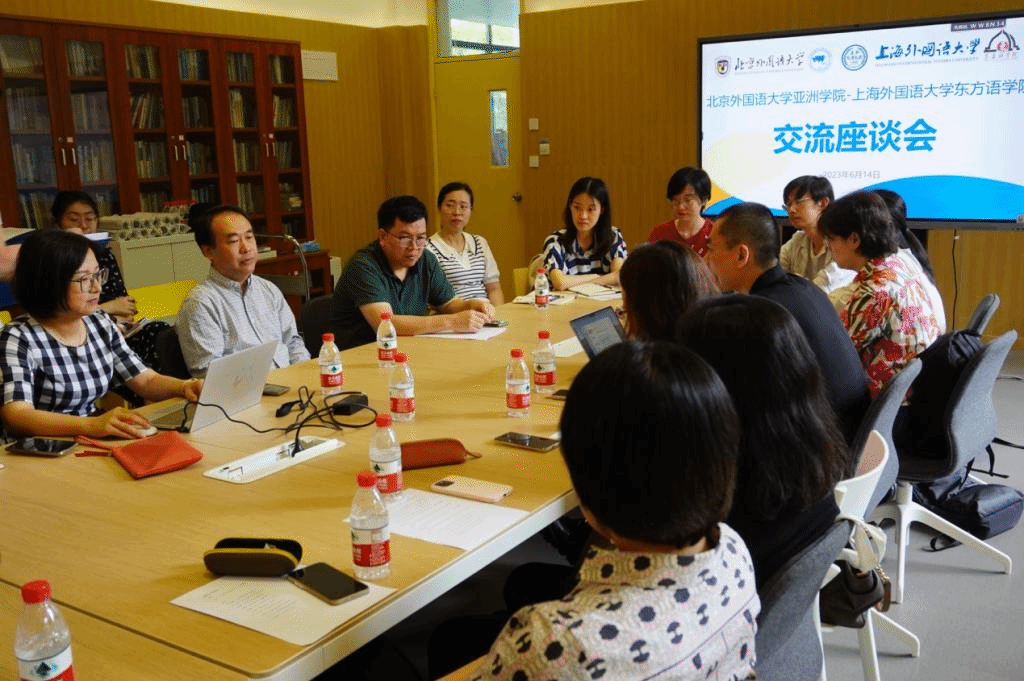 为学习兄弟院校非通用语专业建设与学科发展经验,深入学习贯彻党的二十大精神,英国上市官网365副经理汪波一行于6月14日前往上海外国语大学开展调研,调研团成员包括僧伽罗语专业佟加蒙教授,土耳其语专业李智育副教授,马来语专业邵颖副教授,越南语专业钟珊老师,希伯来语教研室主任范晓老师,乌尔都语教研室主任袁雨航老师,波斯语专业王莹老师,印地语专业任筱可老师,亚美尼亚语专业贺阳老师,地区研究教研室贾云龙老师,辅导员郝雪妮等。