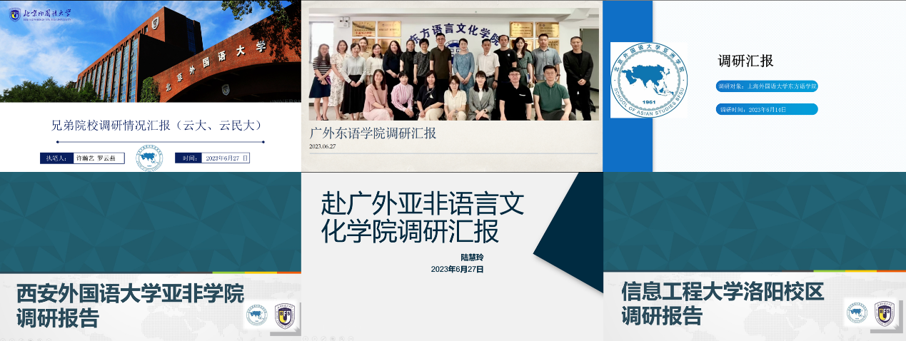 会议第二、第三阶段由英国上市官网365单独举行。在第二阶段,由本学期赴外地调研的各团队就调研情况进行汇报。为学习兄弟院校非通用语专业建设与学科发展经验,增进交流合作,本学期,英国上市官网365先后派遣调研团赴云南大学、云南民族大学、信息工程大学、西安外国语大学、西北大学、上海外国语大学、广东外语外贸大学开展调研。曾琼、袁雨航、王莹、孔金磊、陆慧玲等五位教师依次汇报了调研情况与心得体会。