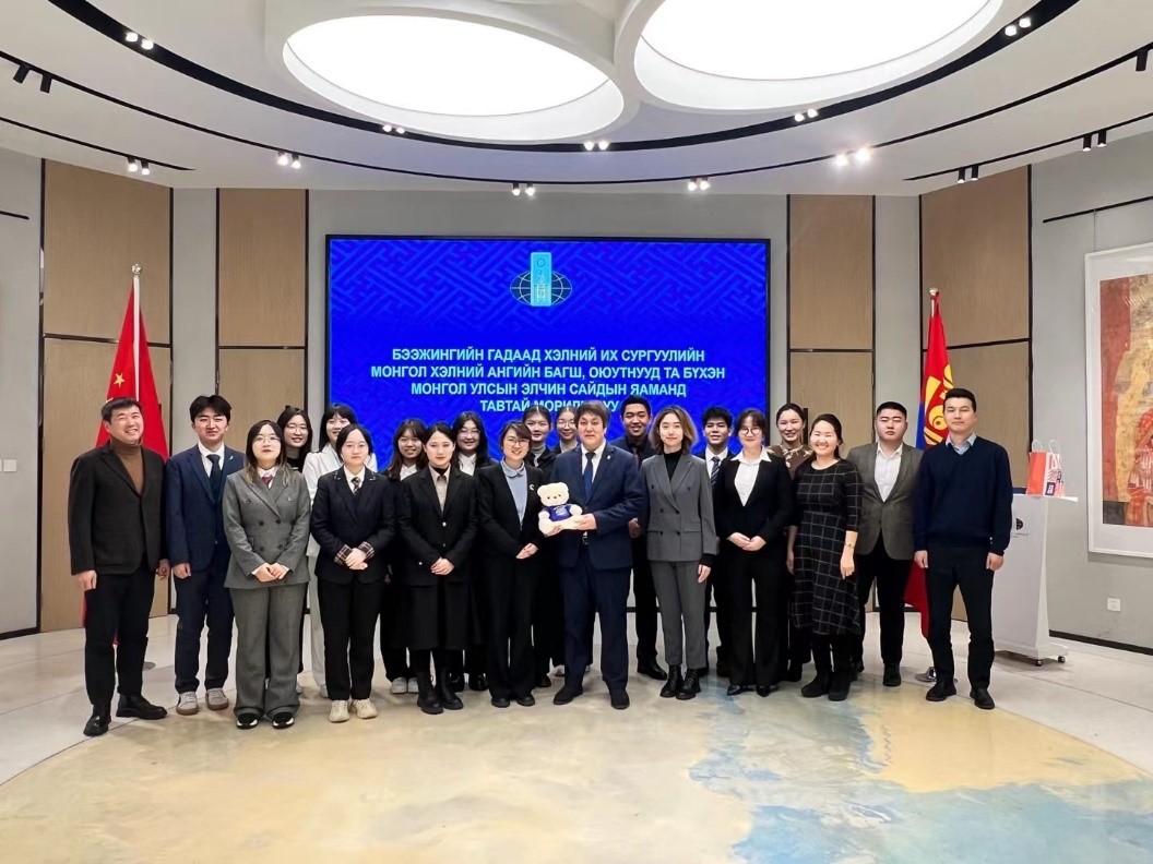 12月13日下午,应蒙古国驻华大使馆邀请,北外英国上市官网365蒙古语专业师生拜访蒙古文化信息中心,并与蒙古国驻华大使馆参赞满都呼先生、蒙古文化信息中心主任萨林格女士,以及使馆相关工作人员开展交流活动。
