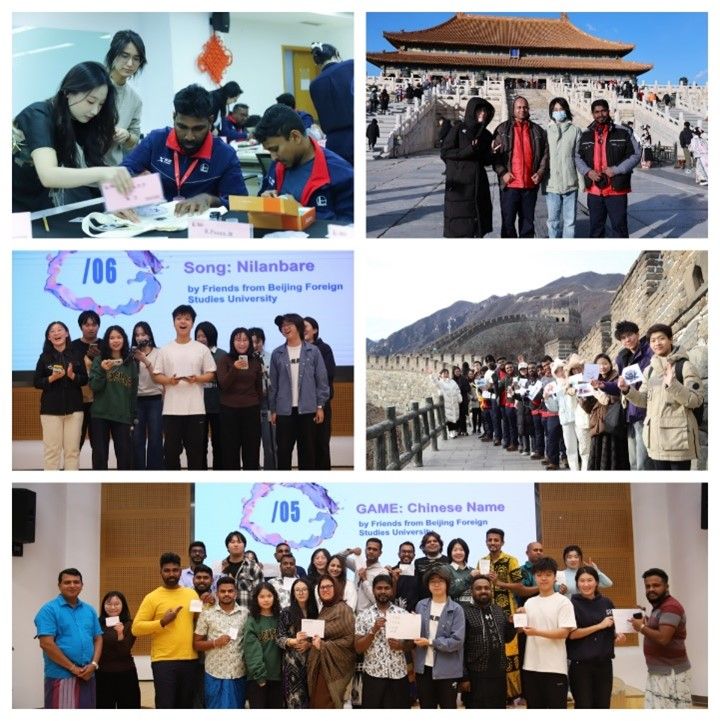 活动开始前,同学们积极建言献策,与中石化员工共同为多场文化交流活动策划了丰富多彩的节目。11月23日,在中国石油化工管理干部公司举行的文化交流联欢会上,僧伽罗语专业同学为晚会带去了精彩的僧伽罗语歌曲表演、中国传统乐器演奏,并主导了教斯里兰卡籍员工写毛笔字、起中文名等别开生面的活动。其后的一周内,同学们还分组陪同参加培训的斯籍员工参访了长城、故宫等著名景点。期间,同学们负责为斯籍员工提供僧伽罗语讲解服务、策划拓展游戏,并借助大创项目成果成功向外籍员工展示了中国传统民俗工艺。活动期间,同学们凭借出色的外语水平、良好的组织策划能力、认真负责的工作态度,受到中石化燃料油公司领导、工作人员以及参训外籍员工们的高度评价。