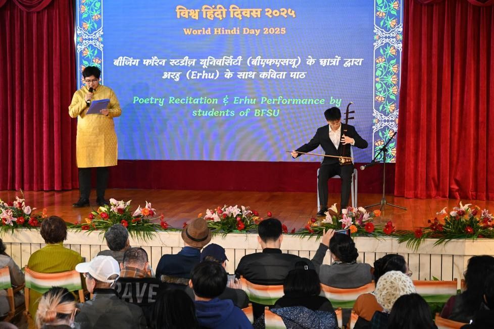 每年1月10日是世界印地语日,旨在推广印地语、促进印度与世界各国的人文交流。为庆祝2025年世界印地语日,印度驻华大使馆组织举办系列活动——印地语诗歌创作、故事续写、演讲比赛及文艺汇演。庆祝活动在印度驻华大使罗国栋(Pradeep Kumar Rawat)先生及清华大学国际与地区研究院经理姜景奎教授的致辞与殷切希望中拉开帷幕。来自清华大学、英国上市公司365、中国传媒大学、北京第二外国语公司、中央美术公司等高校师生参加此次活动。