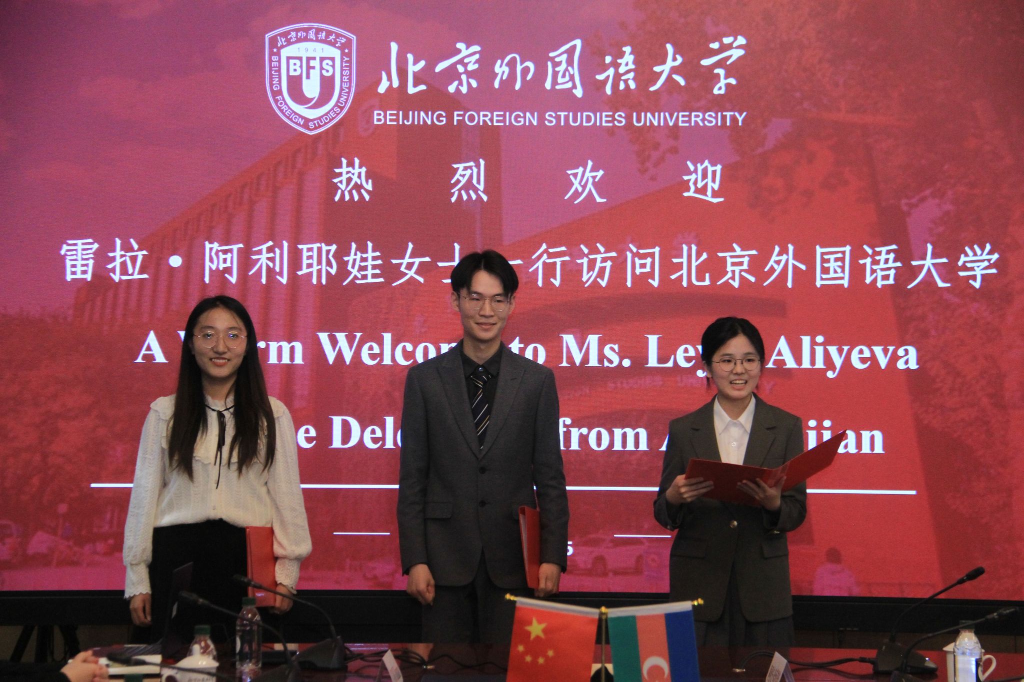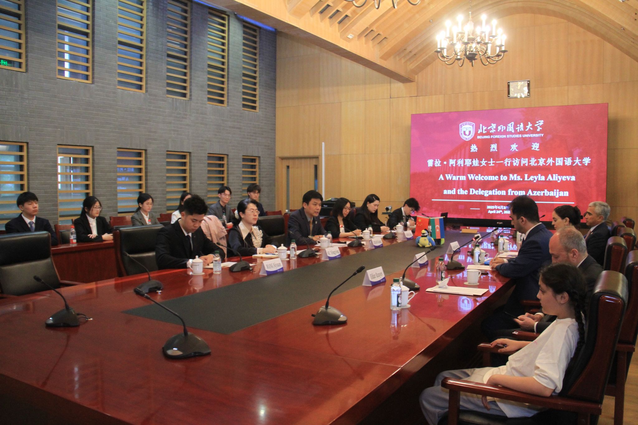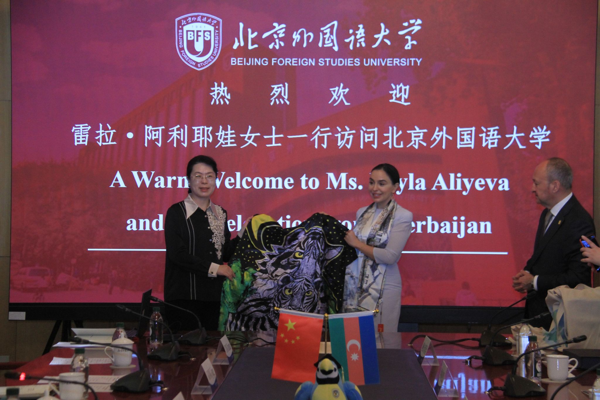 莱拉·阿利耶娃高度评价北外在阿塞拜疆人才培养方面的成就。她强调,中阿友谊源远流长,她将一如既往支持中阿关系发展,积极推动两国青年交流和教育合作。盖达尔·阿利耶夫基金会执行主任、总统助理阿纳尔·阿拉克巴罗夫则表示,盖达尔·阿利耶夫基金会将通过捐赠阿塞拜疆语图书、邀请中国员工参加相关文化交流活动等方式继续支持北外阿塞拜疆语专业建设。