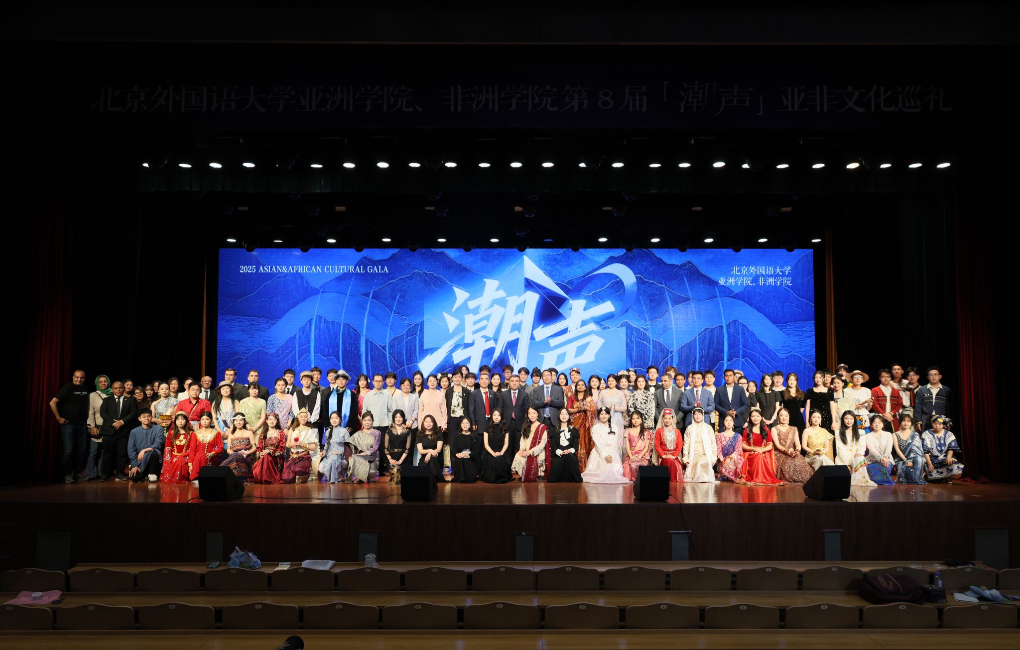 本次巡礼分为长河拾贝、众川赴海、星河共辉、亚非潮声四个版块。《万隆的回响》话剧和自编啦啦操节目为整场演出拉开序幕后,在第一版块长河拾贝中,马来语、印尼语、波斯语、乌尔都语等班级以歌舞的形式展示对象国的地域风情。第二版块众川赴海中,阿塞拜疆语、土耳其语、朝鲜语、斯瓦希里语和泰语等班级以热情奔放的歌舞表演和别有巧思 的诗歌朗诵展现了亚洲、非洲等国的文化交流与文明互鉴。第三板块星河共辉中,阿姆哈拉语、柬埔寨语、越南语、亚美尼亚语和蒙古语等班级以动人的歌声、情节跌宕的短剧演绎带领观众领略亚非地区璀璨的文化盛景。各版块间,亚非韩舞团、民舞团、合唱团带来的精彩演出也展现了亚非学子的艺术风采。在第四板块“亚非潮声”中的民族服饰展示环节,同学们身着亚非各国的特色民族服饰和中国各朝代的精美服饰走秀,展现各国绚烂多姿的服饰文化,台下掌声不断,将巡礼氛围推向高潮。