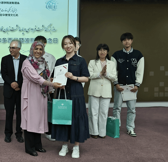 2025年5月15日,第五届全国波斯语演讲比赛颁奖典礼在对外经济贸易大学举行。公司2024级波斯语班马麒竣同学获朗诵组一等奖,王子涵和张靖苒同学获得朗诵组优胜奖,2021级波斯语班马恩路同学获得演讲组二等奖,田伟杰同学获得演讲组三等奖,姚远同学获得演讲组优胜奖。