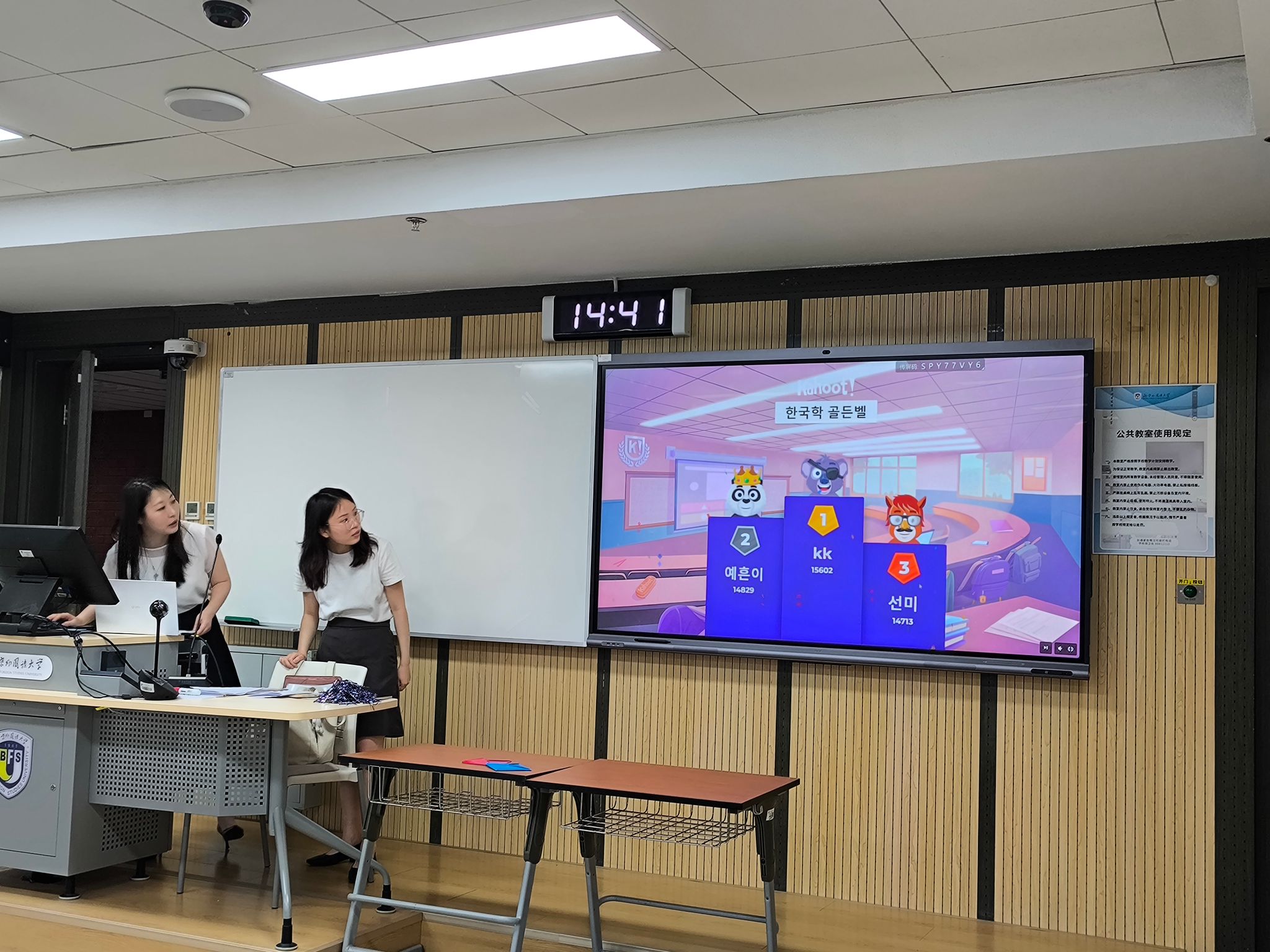 活动设置韩语写作比赛、韩国学知识竞赛及韩国传统游戏体验三个环节。在韩语写作比赛中,员工围绕“与韩国相关的经历与思考”进行即兴创作,内容真挚,体现了良好的语言表达能力与文化理解力。公司2024级本科生邢博凯荣获低年级组最优秀奖,2022级本科生姜心怡荣获中年级组最优秀奖,展现了公司朝鲜语专业作为国家一流本科专业的教学实力与人才培养成效。