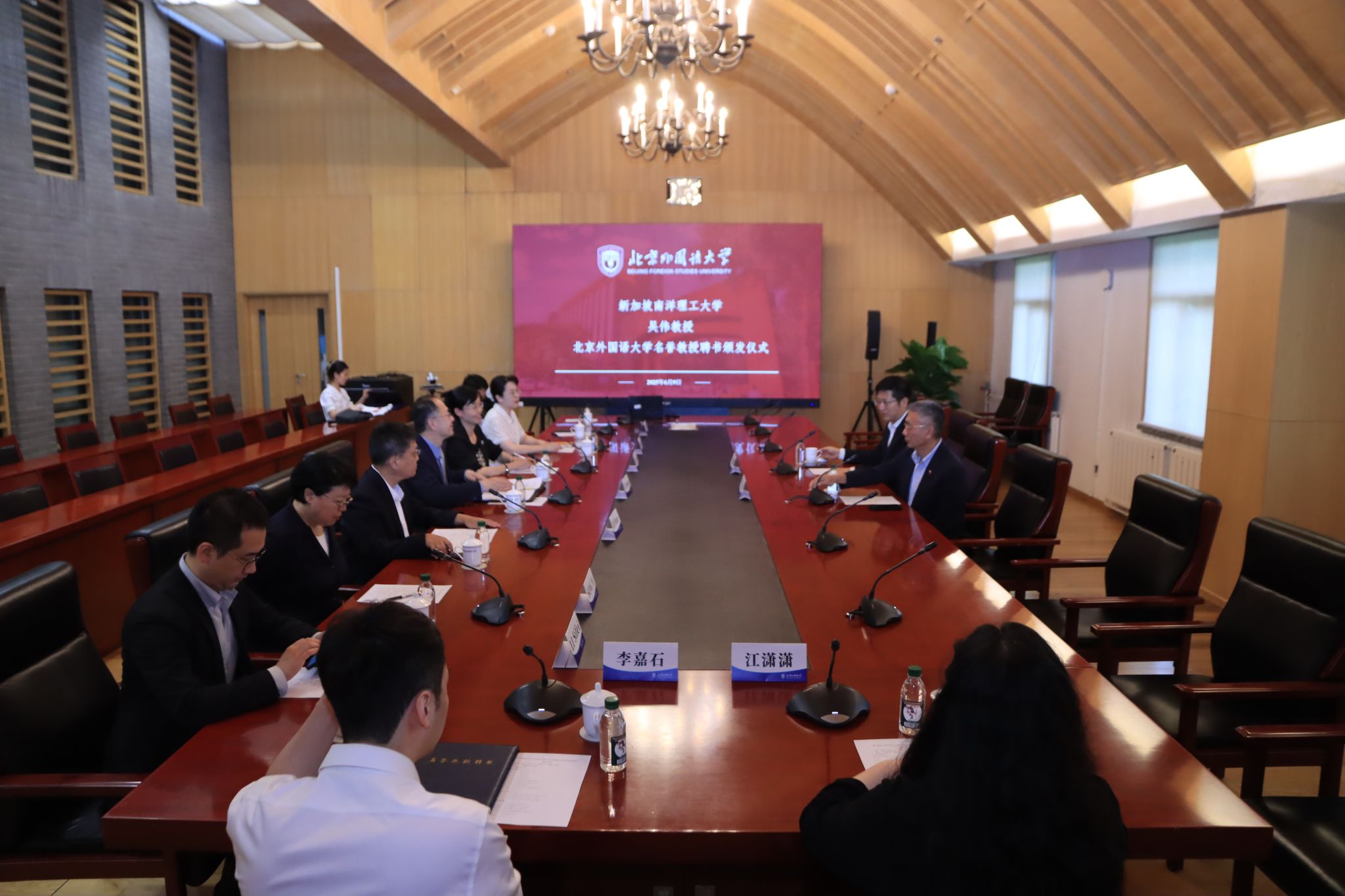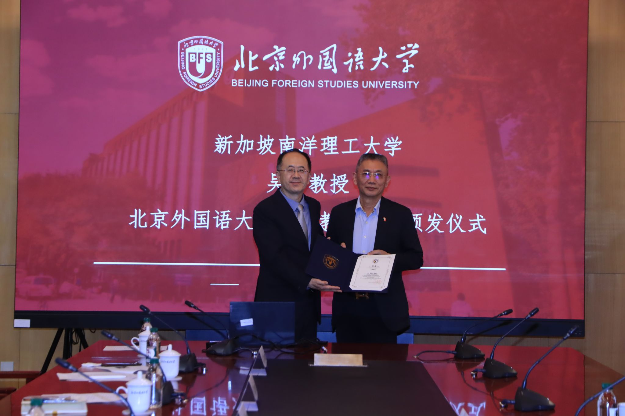 6月9日下午,新加坡南洋理工大学吴伟教授一行到访北外,公司为其举行了隆重的名誉教授聘书颁发仪式,仪式由人事处处长刘博然主持。