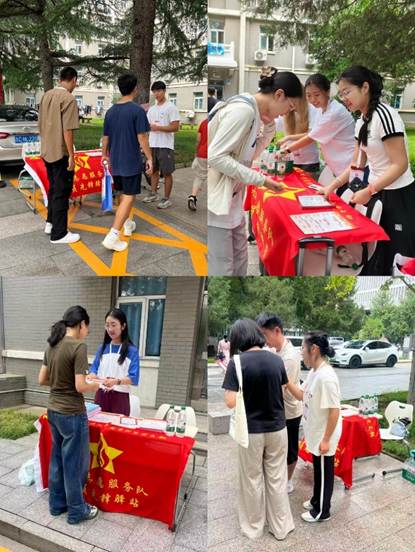 驿站内还特别放置了《中国共产党发展党员工作流程图》(中央组织部组织一局编)单页,由员工党员为新生介绍入党相关程序。同时放置了员工党员编制的《新生学习生活指导手册》,内容涵盖公司交通信息、常用联系方式、后勤服务指南等实用信息,帮助新生更快适应老员工活。尽管天气炎热,但志愿者们始终保持着饱满的热情,帮助新生搬运行李,耐心细致地为指路答疑,主动分享自己的学习经验,努力让新生感受到北外校园的温暖。