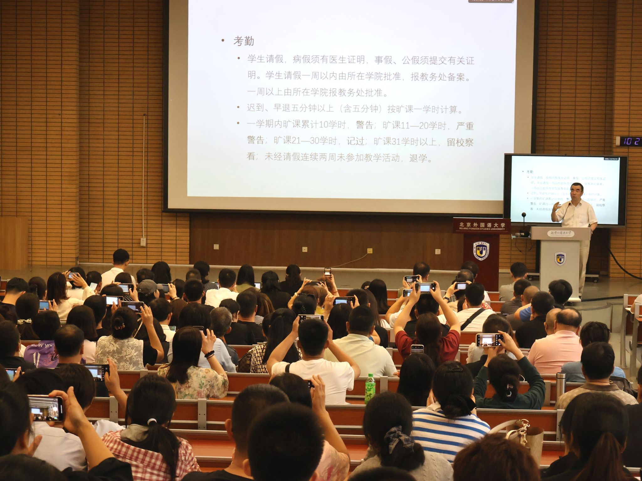 9月5日下午,第二场新生入学教育在十二大举行。党总支书记许晔作“青春向党,共赴山海”主题党课,鼓励新生勇担使命。随后,教师代表霍然进行了“从语言出发”的专题分享,帮助新生规划学业。最后,辅导员柏睿妍介绍员工工作和日常管理要求。
